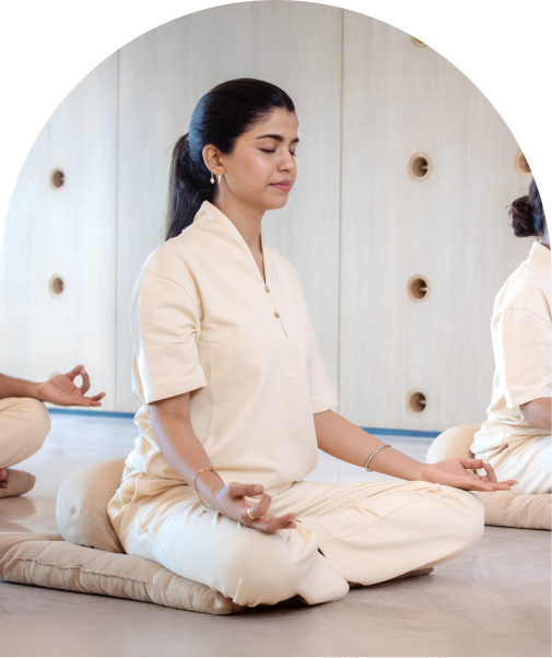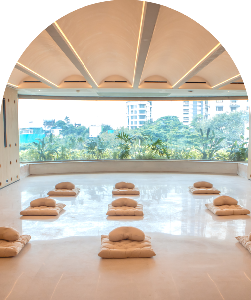 Nestled in Worli, our Urban Ashram is a tranquil sanctuary in the heart of Mumbai city where ancient practices meet modern life. Through our holistic approach spanning 7 fundamental pillars (Yoga, Prana, Gyana, Divya, Chikitsa, Dhyana, Ahaaraa), we created a space for genuine transformation amidst the rhythm of city life. Here, you can simply be and discover what feels authentic for you.